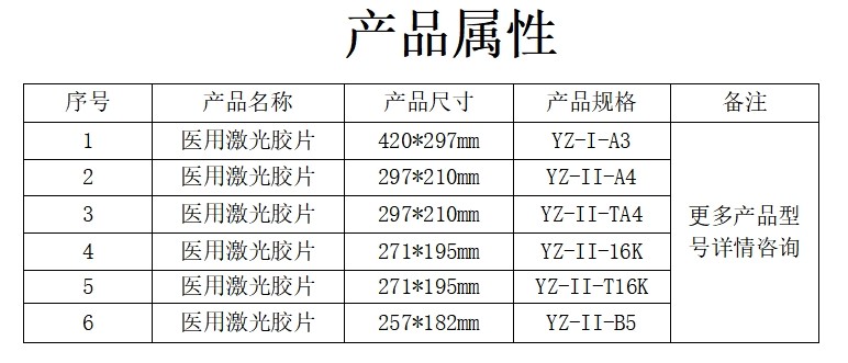 产品名称:医用激光胶片
